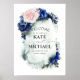 Välkomsttecken för marinblått och rosa blommigt bröllop