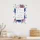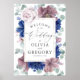 Välkomsttecken för Mauve och blåa blommor bröllop
