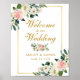 Vattenfärgsfärgad Blommigt Rosa Guld Bröllop Välkomsthälsning Poster