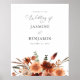 Välkomna till dina gäster till bröllop eller party med ditt foto och namn på ditt Rustic Earth & Champagne Blommigt Bröllop Välkomstskylt Poster. Tillverkad med handmålad, vattenfärgad persika, champagnebeige, kräm och burgundy terracotta blommigtar och löv. Underbar för boho bröllop, fallbröllop, rustik bröllop och terracotta, rost orange bröllop.