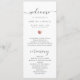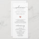 Bröllopsprogrammet i chicen är enkelt. Modern typografi och fantastisk kalligrafi som ett söt hjärta i (tryckt) ro guld visar, är denna serviceordning med en sammanfattning av nyckel på baksidan både minimalistisk och elegant.