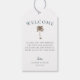 Sjölandskapet i den ryska chicen handflatan träd och vattenfärgsstranden inspirerade till att stödja märkre i bröllop välkomna presentsäckar. Anpassa och anpassa teckensnittet stil, färg och storlekt.