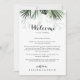 Det tropiska gröna vita bröllop välkomna brev är perfekt för ett destinationsbröllop. Grönt handflatan lämnar buketter med vita vackra blommor. Anpassa fronten med ett välkomstmeddelande till dina gäster och till namn. Anpassa baksidan med schemat för händelser och annan användbar information.