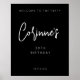 Elegantens enkla svarta välkomstskylt kommer att vara underbart för födelsedagsfirande. Tecknet kan vara personlig med ett eget namn, antal år, händelsedatum eller annan information. Du kan också ändra färg för teckensnitt och bakgrund.