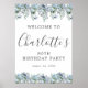 Välkomsthälsning för 80:e födelsedagsblått Blommig Poster