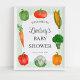 En söt grönt-babydusch poster välkomstskylt. Konstruktionen har handmålade vattenfärggrönsaker på en pastellbakgrund med gingham-grönt.