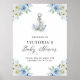 Välkomna gäster till ditt evenemang med den här välkomstskylten om vismisk och elegant babydusch. Den har en vattenfärgad illustration av ett ankare med blå och vita blommor. Anpassa genom att lägga till namn och annan händelseinformation. Denna blåvita och vita blommigt välkomna poster är perfekt för sommar- och vinterbabydusch.