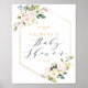 Välkomstskylt för guld Geometric Blommigt Baby Shower. Utformningen har ett faux-guld-geometriskt ram som är försett med , vita blommigtar, eukalyptus och andra grönska. Huvudet står ut med vacker och elegant kalligrafi. Anpassa med hjälp av den angivna fälten för mallen. Kontakta oss med hjälp av kontaktknappen nedan om du behöver hjälp.