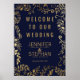 Elegant, modern och chic faux guld och trendig navy blue blommigt handdragen mönster, bröllop välkomnar poster. Denna klassiska och sofistikerade utformning är perfekt för det trendig och det snyggt som gifter sig. Anpassa med ditt eget meddelande på framsidan och en anpassad inledande monogram på baksidan. All fotoutskriftsdesign.