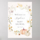 Välkomna gäster till din babydusch med den här vackra skylten, med en ram av vilda blommor och pumpor. Lägg till hedersgästens namn, duschdatum och anpassningsbarnas välkomsttext med hjälp av fält.