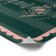 Bröllop-tema med text inuti hand plockade rosa ram med rosa blommigt botaniska linjen teckning över emerald grönt rand bakgrunden.
