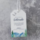 De här Colorado-märkrna för bröllopsgåvor är perfekt för en utomhusbostad bröllop. Utformningen har ett blått och grönt målat vildmarkslandskap med vattenfärgen gräs träd, fåglar och berg. Anpassa märkrna till platsen för bröllop, ett välkomstmeddelande från kort, namn och bröllop. Dessa märkre är perfekt för destinationsbröllop och hotellgästväskor.