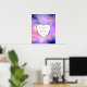 En elegant poster som säger "Välkommen till Bröllop" med en fin kombination av pasteller och ljusa färger. En färgstark abstrakt som målar med en kosmisk rymdbild i vattenfärger för rosa, lila och gult. Färg blandas och blandas ihop och skapar lysande eterformer med små tvillingstjärnor som är genomgående peppade. Anpassa med din namn och bröllop-dejt i en hjärtform i finare.