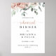 Denna klassiska dammiga rosa ros-repetitionsmiddag för att välkomna poster är perfekt för en rustisk bröllop-repetition. Konstruktionen har elegant vattenfärgsdamm i rosa ros och grönt bladverk, väl sammansatt i vackra buketter.