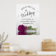 Inför bröllop firande i stil med detta fantastiska tecken. Dess utformning är både sofistikerad och underskattad, med känslig manusgrafi och en graciös, långvarig magenta, kassis lila eller färgad av bär, ro som speglas i ett bassäng av vatten, komplett med vinkara och krusande föremål. Biet är perfektens beröringspunkt för att hälsa dina gäster välkomna på din viktiga dag.