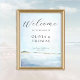 Ett enkelt, modernt, elegant och klassi bröllop välkomsttecken för dig till ram, för ett badbröllop eller en strandmottagning, med en vattenfärgsmålning av ett strandlandskap i vilden.