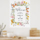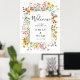 Färglöst Vild Flower Landsbyggsbröllop Välkommen Poster Bröllop-tecken lilor blommor från söt land i orange, gult, rosa och Bröllop på en vit bakgrund med välkomsttecknet från i mitten. Anpassa genom att redigera texten i textrutorna. Designad för dig ©2024 Evco Studio www.zazzle.com/store/evcostudio