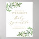 Välkomna gäster till ditt evenemang med det vackra välkomsttecknet från baby. Den har vattenfärgade illustrationer av grönska och vita blommor. Det gröna välkomsttecknet baby sprinkle är perfekt för babyduschar i vår och vintern. Matchande objekt är tillgängliga.
