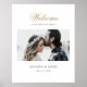 Den här välkomstskylten för bröllop-repetitionsmiddagen i chicen har en skarp, modern design med välkomsttecknet "Welcome" som markeras i elegant guld som heter California Guld. Anpassa det med ditt favoritfoto och gör det unikt för dig! Du kan ändra textens typsnitt och färg till kostym. Och kontrollera vår välkomstsamling för poster i bröllop för mer påfallande design, inklusive den här designen i en bröllopsdag version!