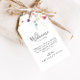 Dessa klassiska färgstarka märkre för vild blommigt bröllop är perfekter för ett rustiskt bröllop. Utformningen har en gult, lila, vita blommor med vild i ro och grönt med vattenfärg. Dessa märkre är perfekt för hotellgästväskor och destinationsbröllop.