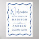 Välkomsthälsning för Modern Blue Vågigt Ram Bröllo Poster