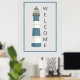 Modern välkommen flagga har enkel fyr, lodrät och tunn blå gräns ram på ljusa grått-bakgrunder. Perfekt för semesterstugor, sjömatsbutiker och andra nautiska/marina eller Kaptordecorteman