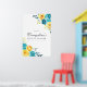 Turkos och gult - möhippan för teal och citronvattenfärg i blommigten poster med korallaccenter med kvarnblommor och bladverk.