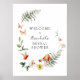 Välkomna gäster till din möhippa med detta vackra tecken, med en krans av grönt, svampar och vilda blommor. Lägg till hedersgästens namn, duschdatum och anpassningsbarnas välkomsttext med hjälp av fält.