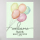 Vattenfärgballonger med flera färg på blekens grönt är en roligt som är utformad för en könsneutral babydusch, och dina detaljer tillsammans med "Välkommen" i ord visas längst upp på den här poster. ÄNDRA STORLEKA så att den passar din händelse. MATCHING-objekt i vår samling.