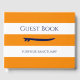 Roligt & Fresh Orange & White Stripe Välkomstgäst Bok kommer att binda samman ditt Nautical-tema. Du kan byta ut logotypen på surfboard och naturligtvis anpassa texten.