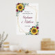 Det här välkomsttecknet i bröllop har en solrosolja med vattenfärg och en blommigt med ro med en ytlig geometrisk gräns med guld. Anpassa den med texten. Matchningsprodukter finns också tillgängliga.