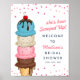 Välkomstskylten (Summer Ice Cream Modern Watercolor Möhippa) Poster en vattenfärgsglasskon med sommarglass fylld med sötfärgade glasproppar på en vit bakgrund med information om Möhippan till högerna. Kan skickas som e-inbjudan med en digital nedladdning som kan delas ut och skrivas ut omedelbart eller som en papper inbjudan eller båda. Anpassa genom att redigera texten i textrutorna. Designad för dig av Evco Studio www.zazzle.com/store/evcostudio