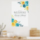 Turkos och gult - teal och citronvattenfärg blommigt bröllop välkomna poster med korallaccenter med kvarnblommor och bladverk.