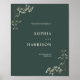 Bröllop hälsar med baby utandningschypsophila botaniska mönster i hörnen med grönt och benvit text.