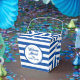 Välkomna ombord till båtboxar för resor, segelutflykter, på bröllopsfesterna vid vatten med mera. Personlig för att tacka gäster. Anpassningsbar på sidan. Modern linjeutskrift med segelbåtsilhuett. Anpassadets bakgrund färg. Utformning av sjöfartstema. Bucket med handtag.