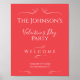 Det här är ett modernt välkomsttecken som poster alla hjärtans dag i party. Det handlar om att byta rött/ rosa mot vit text. Det finns utrymme för dig att lägga till ditt namn och information om party. Texten är uppbyggd av snyggtens snabba hjärtan. Den här eleganten och den moderna designen är perfekt för alla hjärtans dag i firande och perfekt för att välkomna dina gäster. Skriv bara dina uppgifter om party i textrutan Anpassa. Här kan du också ändra resten av texten om du vill. Om du vill ändra färg eller teckensnitt checkar du ut verktyg för designredigering. Om du behöver hjälp med att anpassa dig eller om du behöver hjälp med anpassad design kontaktar du mig via zazzle-chatta eller e-post: ursuladawnmoon@gmail.com