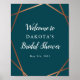 Välkomna möhippor poster med det geometriska ramen i Faux ro guld på tealbakgrund. Anpassa den här produkten genom att lägga till namn och händelsemedatum för den brud som ska visas. Elegant och modern utformning.