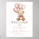Nalle med ballonger rosa flicka dusch välkomna poster.