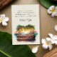 Välkomstkort för solnedgång vid bröllop med ändringsbart dikt. Denna charmerande design har en vattenfärgscen på en trästrand pub eller tiki pub som är full av ljus och handflatan löv och som bortser från havet vid solnedgången. Perfekt för en avslappnad eller ett badbröllop på stranden, chic eller klassens semesterdestination bröllop på stranden. Bakgrund och text har en naturlig och brun palett i färg, som ni gärna vill ändra i utformningen av verktyg. Samordning av bröllop-stationär och händelsemedjans dag finns i vår samling av Sunset Beach Wedding.