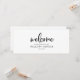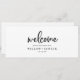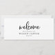 Det här rotationsskriptet som hänger på välkomstrubriken för ett diagram är perfekt för ett landsbyggsbröllop. Den enkla och moderna svarta och vita designen har en unik liten, handskriven kalligrafiskrift med en contemporary minimalistisk boho stil. Anpassade i alla färg. Behålla designen minimal och förenklad, eller anpassa den genom att lägga till egna bilder och teckningar. Kortet skrivs ut på framsidan och baksidan (dubblan). Kontrollera om det finns några koordinerande platskort för bordsnumret.