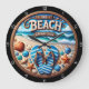 Ta hem strandviberna med den här charmerande klockan! Med ett par blå strimlade flip-flops på en sandstrand med texten "Beach is My Lycklig Ställe", omgiven av segelceller och stjärnfisk. Perfekt för att lägga till en kustkontakt till vilket rum som helst, den här klockan gör påstående biet och en underbar gåva till stranden älskare.