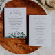 Välkomna gästerna i stil med det här dubbla-sidiga bröllop-färdkortet från Highland Collection by Redwood & Vine Design Co. Ett handmålat grönt-bergsillustration förankrar designen, parat med tidlös serif och flödesskript typsnitt. Framsidan innehåller ett välkomstmeddelande för personligen, medan baksidan har en ren och lättläst tidslinje för händelserna i bröllop helg. Perfekt för bergsdestinationer, skidloge bröllop och firande utomhus, det här kortet gör både värme och organisation till din stora dag.