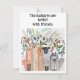 Välkomstkort för högtider med akvarell och bläck. Ludna skogsdjur i snön med texten "Högtiderna är bättre med vänner."