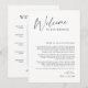 Lägg till en personlig beröring till välkomstpåsarna i bröllop med det här vackert designade välkomstbokskortet för Bröllop och ordertidslinjekortet. Det här kortet har en enkel, modern layout och är perfekt för att tacka gästerna för att de kommit hit och delat med sig av evenemangsschemat och din resväg, vilket gör att gästerna känner sig uppskattade och organiserade.
