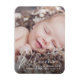 Meddela din baby födelse med den här keepémagneten som visar hans eller hennes foto med "Välkommen" skriven ovanpå i ett vitt skript i snyggten. Under den tiden kan du lägga till hans eller hennes namn, födelsedatum och födelsestatus i modern vit typografi.