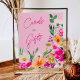 Ett kort- och presenttecken med Elegant ljusa och djärva, moderna sommarblommor i vår med söt överdimensionerad blomma i vild och möhippa för penselskript med en modern kalligrafi-typografi med skarp rosa, orange, grönt och gula blommor på återpastellrosa