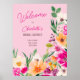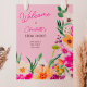 Välkomna gästerna i stil med vår Elegant ljusa och djärva, moderna sommarblommor i vår med söt överdimensionerad vild blomma och möhippa för penselskript med en modern kalligrafi-typografi med skarp rosa, orange, grönt och gula blommor på retropastellrosa.
