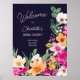 Välkomna gästerna i stil med vår Elegant ljusa och djärva, moderna sommarblommor i vår med söt överdimensionerad vild blomma och möhippa för penselskript med en modern kalligrafitypografi med skarp nyans rosa, orange, grönt och gula blommor på marinblått.