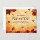 Fira höstens mysiga charm med detta rött vykort och orange som illustrerar detta. Med naturligt fall i inslag är det perfekten att välkomna november, att skicka säsong hälsning eller att dela med sig av en varm ton till vänner och familj.