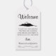 Enkel dekorativ blomning med målat berg, bröllop välkomnar märkre för presentsäckar. Anpassa och anpassa teckensnittet stil, färg och storlekt.